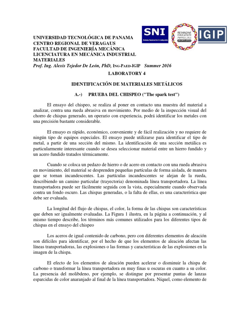 Spark Test Acero Hierro